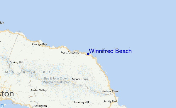 Winnifred Beachis just a mile away from where the famous actor Tom Cruise once juggled bottles into cocktails. It is known amongst Jamaica's exclusive beaches as one of the most appealing beaches in all of Jamaica. Located in the Fairy Hill community in the parish of Port Antonio and home to a wonderfully delightful reef just offshore perfect for snorkeling and also its calm, clear, bright-blue waters are very popular with the locals.